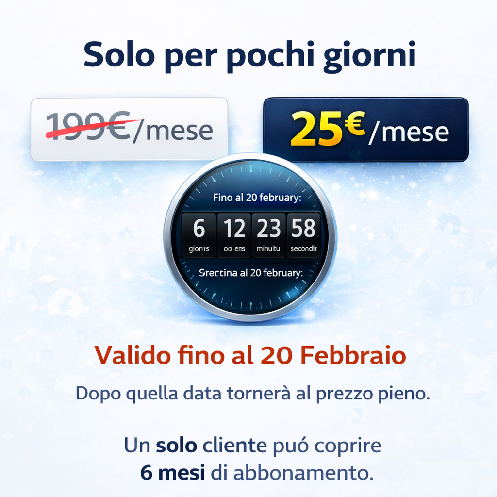 Ora disponibile a 25€/mese invece di 199€ fino al 20 Febbraio.